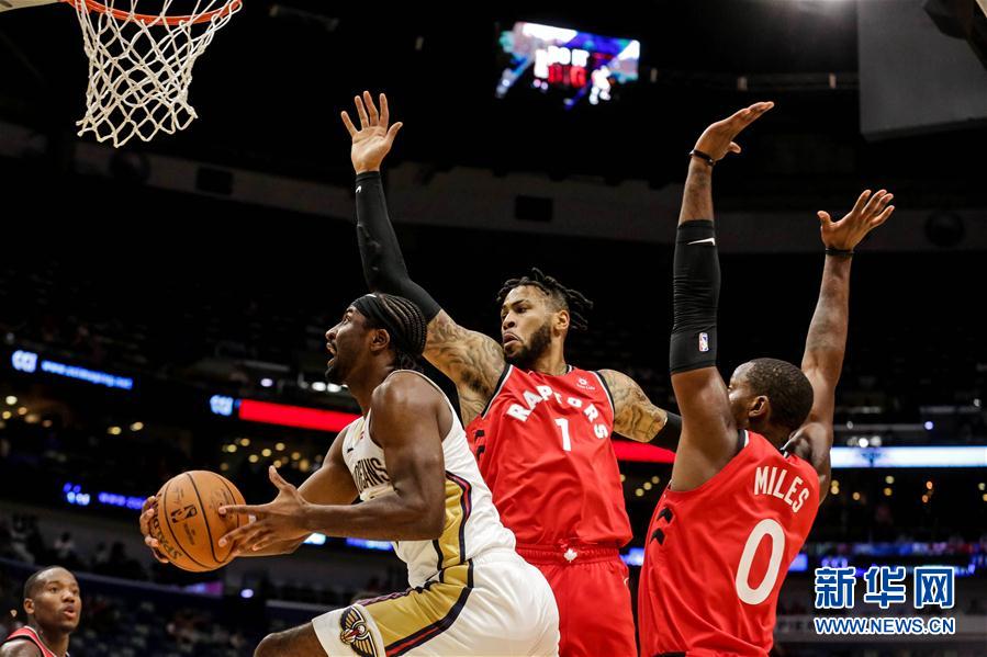 10月11日,鹈鹕队球员希尔(左)在比赛中进攻。当日,在2018-2019赛季NBA季前赛中,新奥尔良鹈鹕队以119比134不敌多伦多猛龙队。新华社/路透