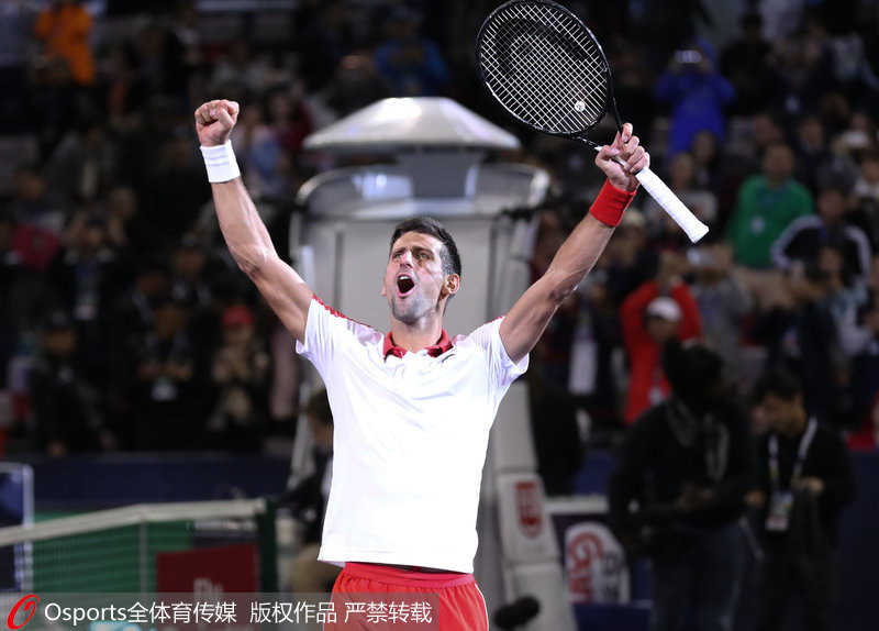 人民网北京10月15日电 北京时间10月14日,2018年ATP上海大师赛男单决赛打响,2号种子、塞尔维亚选手德约科维奇以6-3/6-4击败13号种子、克罗地亚小将丘里奇,第四次夺得该项赛事冠军,同时这也是他个人职业生涯第32个大师赛冠军。