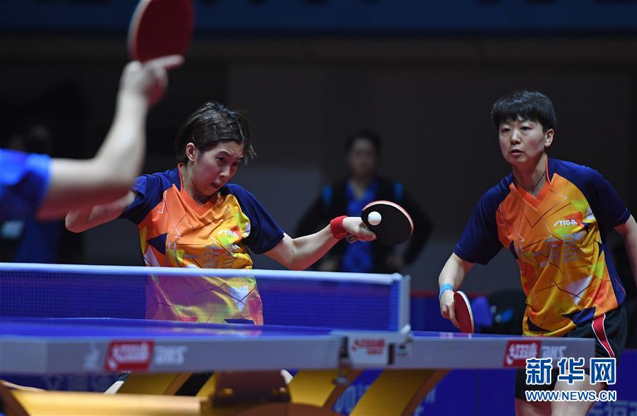 ↑10月13日,八一南昌队选手陈可(左)/木子在双打比赛中。最终她们以2比1战胜黑龙江中州电缆永刚队选手冯天薇/刘铭。 当日,在2018/2019赛季乒超联赛女子团体第1阶段第2轮比赛中,八一南昌队主场以3比0战胜黑龙江中州电缆永刚队。 新华社记者万象摄