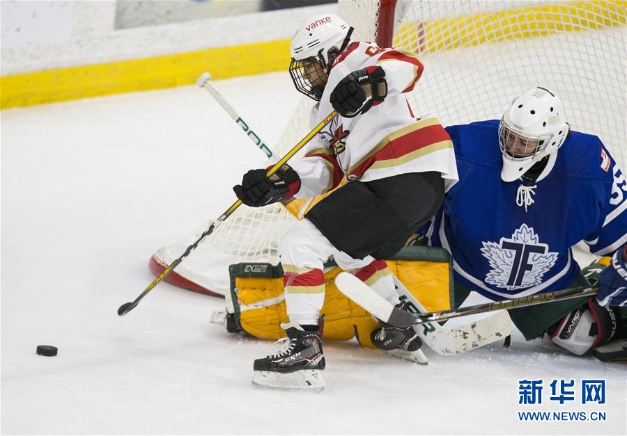 10月14日,深圳昆仑鸿星万科阳光队球员林尼(左)在比赛中进攻。 当日,在2018-2019赛季加拿大女子冰球联赛中,深圳昆仑鸿星万科阳光队客场以3比0战胜多伦多狂暴队,取得两连胜。 新华社记者邹峥摄