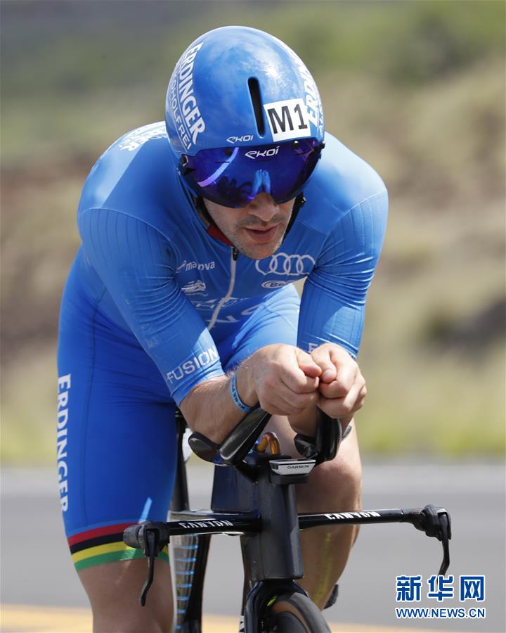 10月13日,德国选手朗格在自行车项目比赛中。 当日,在美国夏威夷州凯卢阿·科纳举行的铁人三项世界锦标赛上,德国选手帕特里克·朗格刷新了自己去年创造的纪录,以7小时52分39秒的成绩获得冠军。 新华社/美联