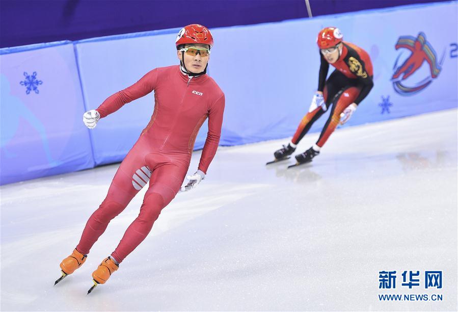 10月14日,哈尔滨市冬季运动项目训练中心队选手任子威庆祝夺冠。 当日,在吉林长春举行的2018中国杯短道速滑精英联赛第一站男子5000米接力决赛中,哈尔滨市冬季运动项目训练中心代表队以7分19秒999的成绩夺得冠军。 新华社记者孙玮彤摄