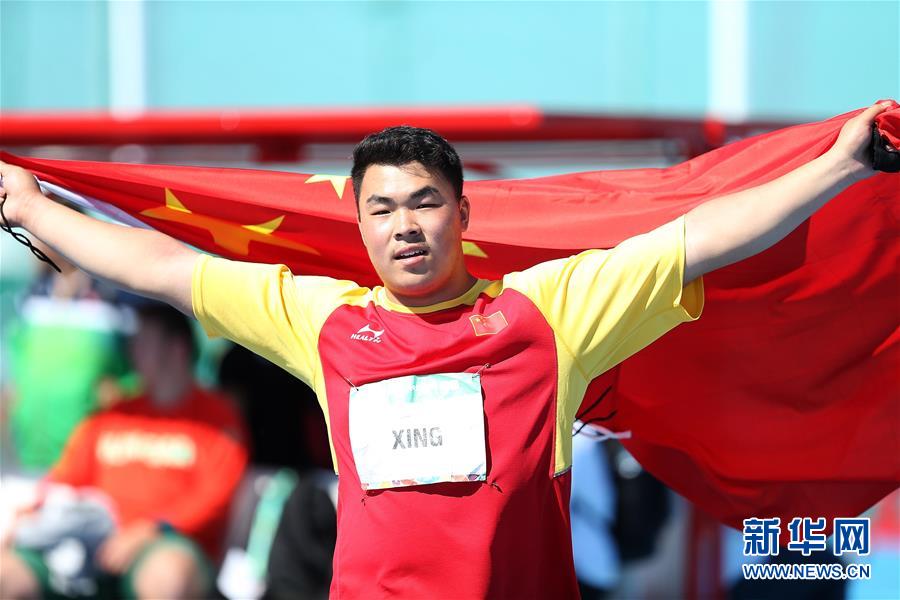 10月15日,中国选手邢家梁在第二阶段比赛后庆祝。 当日,在阿根廷布宜诺斯艾利斯举行的第三届夏季青年奥林匹克运动会田径项目男子铅球比赛中,中国选手邢家梁经过两阶段比赛,总成绩排名第二,获得银牌。 新华社记者李明摄