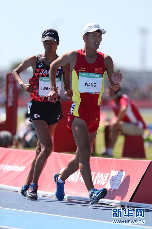 10月15日,王欣(右)在比赛中。 当日,在阿根廷布宜诺斯艾利斯举行的第三届夏季青年奥林匹克运动会田径项目男子5000米竞走第二阶段赛中,中国选手王欣率先冲过终点,但随后被判犯规取消成绩,最终无缘奖牌。 新华社记者李明摄