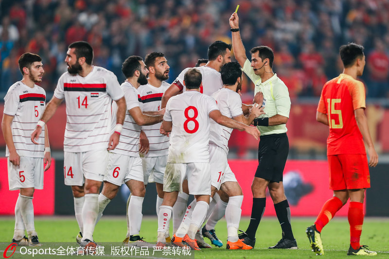 人民网北京10月17日电(李乃妍)北京时间昨晚20:00,中国男足国家队在南京与叙利亚男足展开一场热身赛。最终,凭借郜林和武磊的进球,中国队2:0战胜叙利亚队,结束热身赛三场不胜, 并迎来今年下半年的首场胜利。