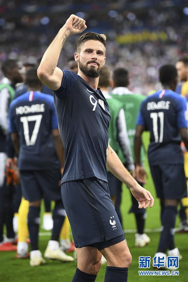 10月16日,法国队球员吉鲁在比赛后庆祝。 新华社发(杰克·陈摄)