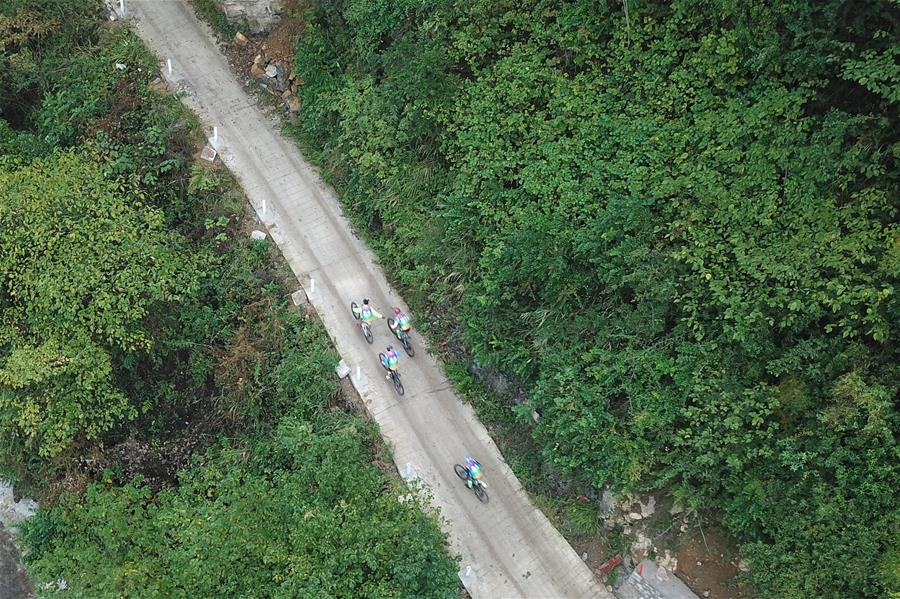 10月18日,地大北京户外队选手在山地自行车项目的比赛中。新华社记者欧东衢摄