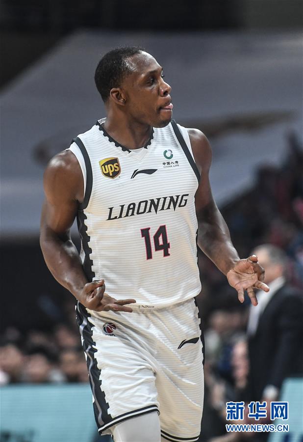 ↑10月21日,辽宁本钢队球员哈德森在得分后庆祝。 当日,在2018-2019赛季中国男子篮球职业联赛(CBA)常规赛首轮比赛中,辽宁本钢队主场对阵山东西王队。 新华社记者潘昱龙摄