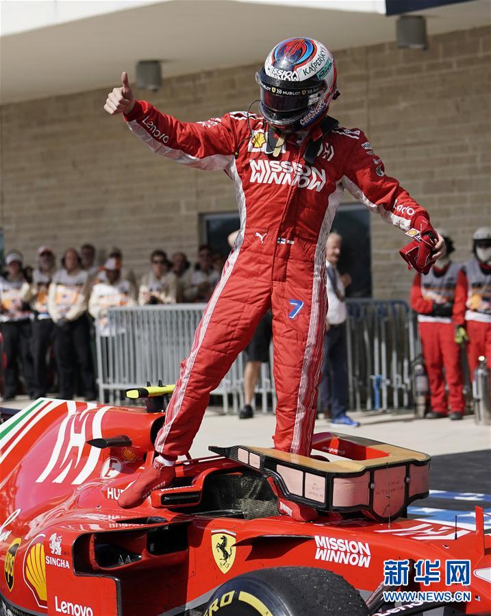 10月21日,法拉利车队芬兰车手莱科宁庆祝夺冠。 当日,2018赛季世界一级方程式赛车锦标赛(F1)美国大奖赛在奥斯汀结束正赛争夺,法拉利车队芬兰车手莱科宁夺得冠军。 新华社/美联