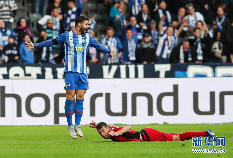 10月21日,柏林赫塔队球员普拉滕哈特(上)在比赛中对主裁判的判罚表示不满。 当日,在2018-2019赛季德国足球甲级联赛第八轮比赛中,柏林赫塔队主场以1比1战平弗赖堡队。 新华社记者单宇琦摄
