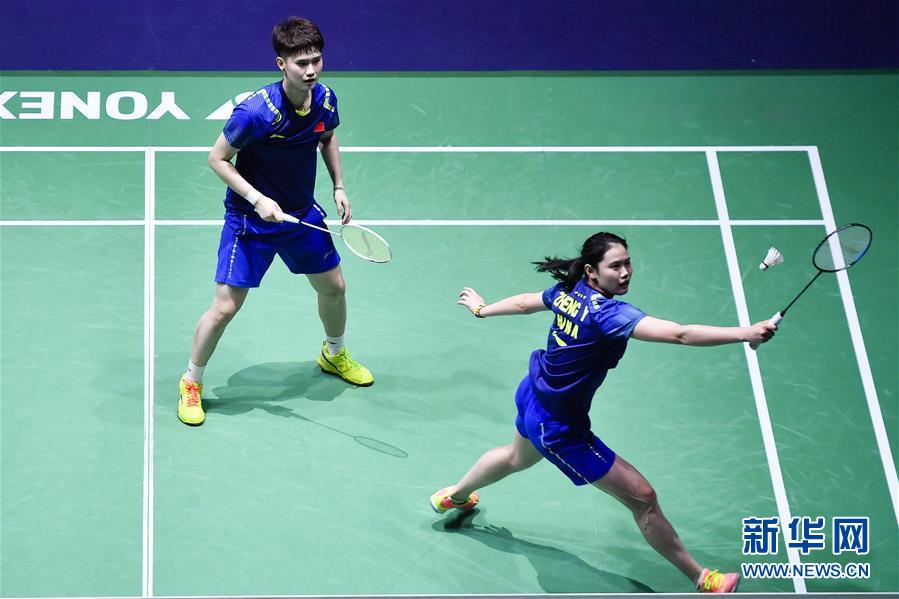 10月23日,中国组合李汶妹/郑雨(右)在比赛中。 当日,在法国巴黎顾拜旦体育馆举行的国际羽联世界巡回赛法国公开赛女子双打首轮比赛中,中国组合李汶妹/郑雨以2比0战胜英格兰组合伯奇/史密斯,晋级第二轮。 新华社记者陈益宸摄