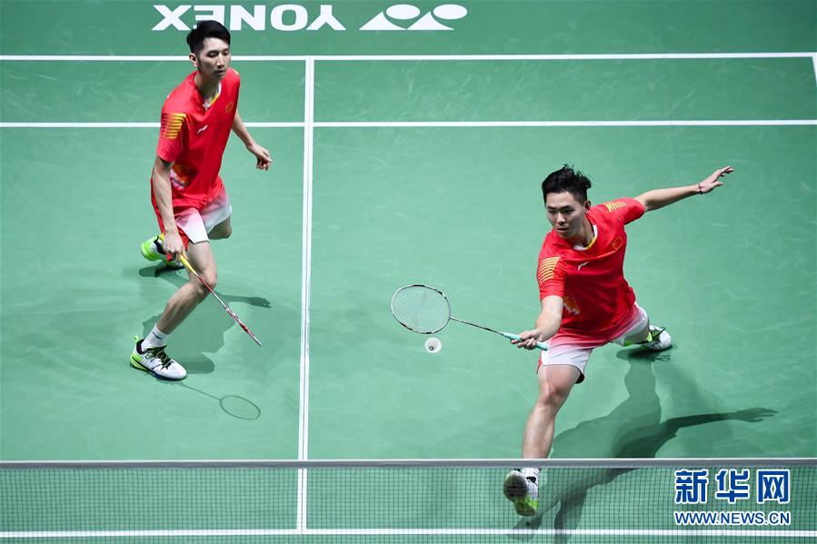 10月23日,中国组合韩呈恺/周昊东(右)在比赛中。 当日,在法国巴黎顾拜旦体育馆举行的国际羽联世界巡回赛法国公开赛男子双打首轮比赛中,中国组合韩呈恺/周昊东以2比0战胜日本组合保木卓朗/小林优吾,晋级第二轮。 新华社记者陈益宸摄
