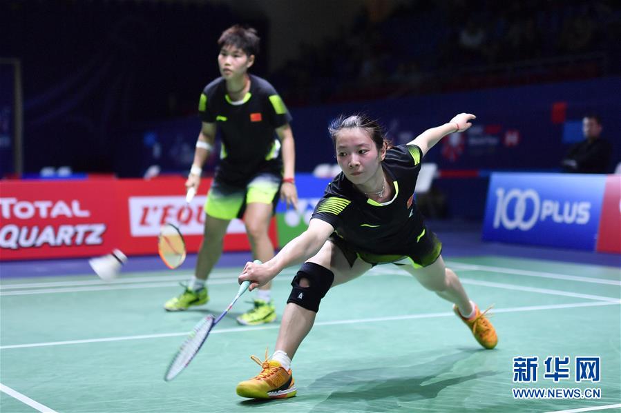 10月24日,黄东萍/黄雅琼(前)在比赛中。 当日,在法国巴黎顾拜旦体育馆举行的2018国际羽联世界巡回赛法国公开赛女子双打首轮比赛中,中国组合黄东萍/黄雅琼以0比2不敌日本组合福岛由纪/广田彩花,无缘第二轮。 新华社记者陈益宸摄
