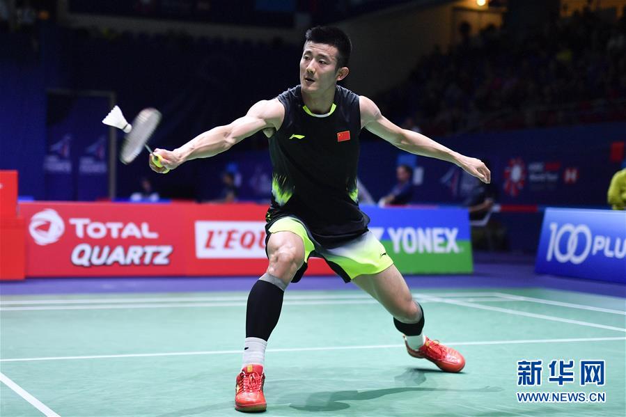 10月24日,谌龙在比赛中。 当日,在法国巴黎顾拜旦体育馆举行的2018国际羽联世界巡回赛法国公开赛男子单打首轮比赛中,中国选手谌龙以2比0战胜法国选手莱维德斯,晋级十六强。 新华社记者陈益宸摄