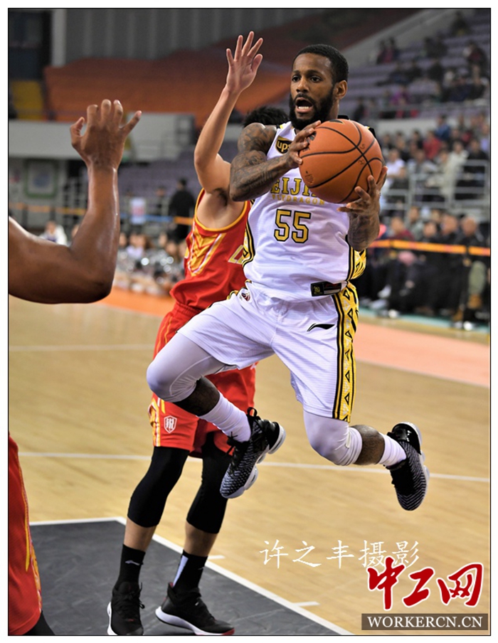 2018年10月25日晚,北京奥体中心篮球馆,CBA常规赛第三轮比赛,北京北控农商行队主场以136比137憾负深圳队。北控队小外援杰克逊身高1米78,本场比赛拿下67分8篮板10助攻,但仍未帮助本队获取得胜利胜,北控队遭遇三连败。工人日报-中工网记者许之丰摄影报道