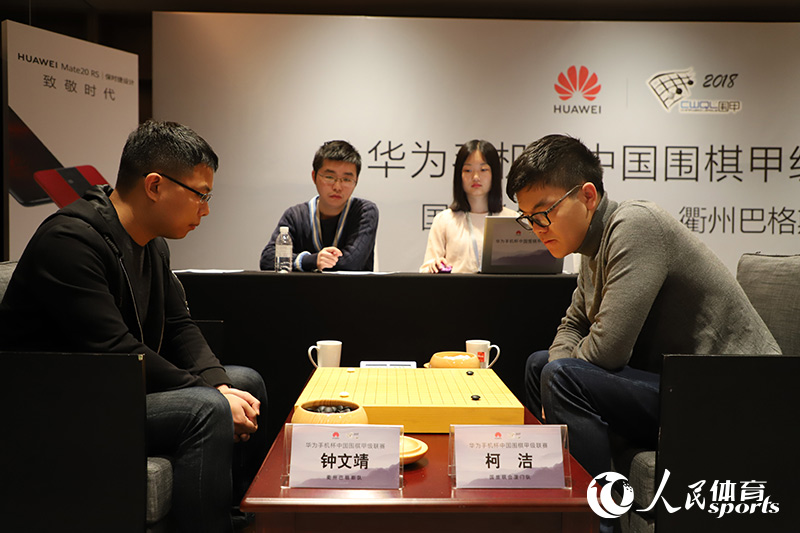 人民网上海10月27日电(管若寒)10月27日,2018“华为手机杯”中国围棋甲级联赛第20轮华为专场在上海打响,由国旅联合厦门队对阵衢州巴格斯队,焦点战柯洁VS钟文靖等。