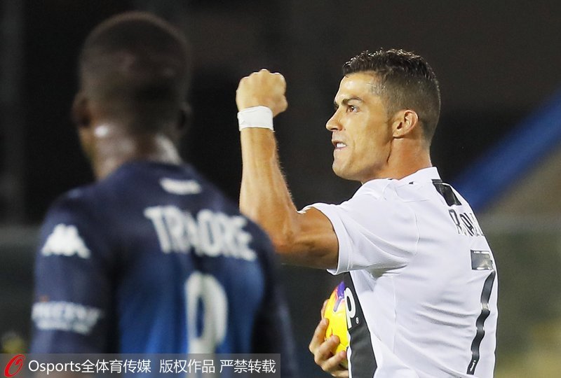 人民网北京10月28日电(管若寒)北京时间10月28日凌晨,意甲第10轮尤文图斯客场迎战恩波利。基耶利尼赛前热身受伤,卡普托首开纪录。下半场,迪巴拉制造点球,C罗主罚扳平,此后轰进世界波,梅开二度,助尤文2-1逆转战胜恩波利。