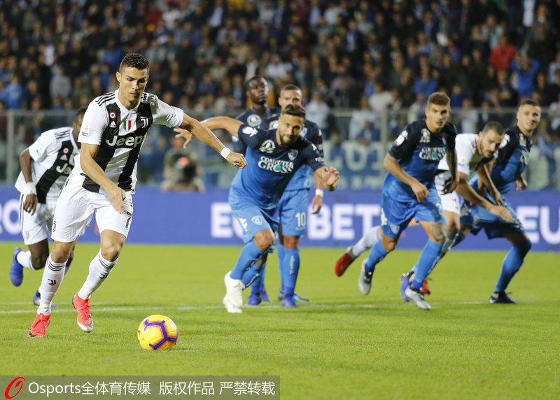 人民网北京10月28日电(管若寒)北京时间10月28日凌晨,意甲第10轮尤文图斯客场迎战恩波利。基耶利尼赛前热身受伤,卡普托首开纪录。下半场,迪巴拉制造点球,C罗主罚扳平,此后轰进世界波,梅开二度,助尤文2-1逆转战胜恩波利。