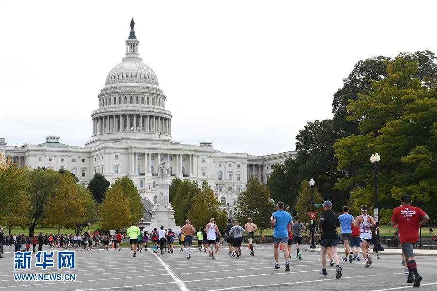 10月28日,在美国首都华盛顿,人们参加美国海军陆战队马拉松赛。 当日,美国华盛顿举行第43届海军陆战队马拉松赛,吸引数万名体育爱好者参赛。 新华社记者 刘杰 摄