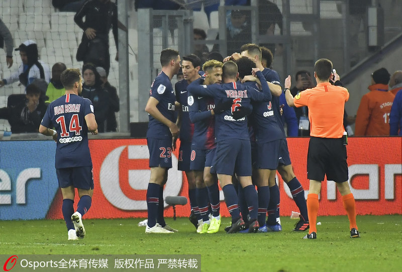 第95分钟,巴黎锁定胜局。姆巴佩直塞,内马尔拿球后突入禁区将球传向后点,德拉克斯勒抢点打空门得手,巴黎2-0马赛!