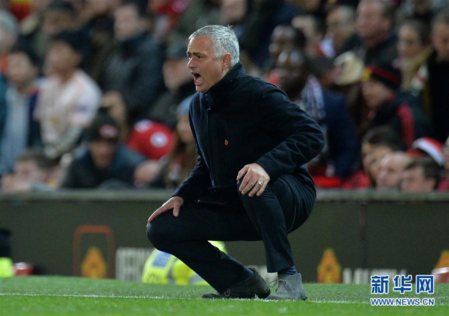 ↑10月28日,曼联队主帅穆里尼奥在比赛中。 当日,在2018/2019赛季英格兰足球超级联赛第10轮比赛中,曼彻斯特联队主场以2比1战胜埃弗顿队。 新华社/路透