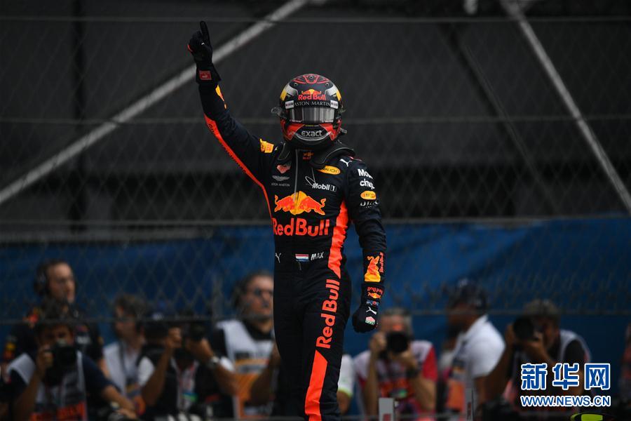 ↑10月28日,红牛车队荷兰车手维斯塔潘庆祝胜利。 当日,2018赛季世界一级方程式赛车锦标赛(F1)墨西哥大奖赛在墨西哥城结束争夺,红牛车队荷兰车手维斯塔潘夺得冠军。 新华社记者辛悦卫摄