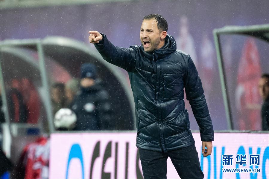 ↑10月28日,沙尔克04队主教练泰代斯科在比赛中指挥。 当日,在2018-2019赛季德国足球甲级联赛第9轮比赛中,莱比锡队主场以0比0战平沙尔克04队。 新华社发(凯文·福格特摄)