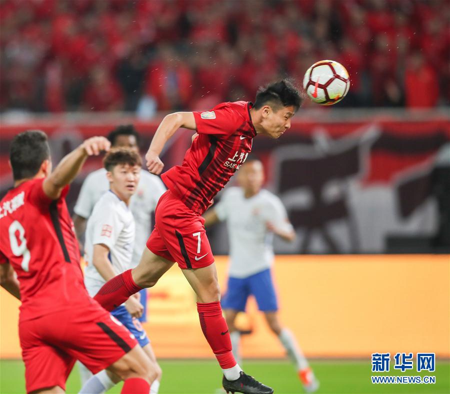 ↑10月28日晚,2018赛季中超联赛第27轮战罢。积分榜前两位的上海上港队和广州恒大队双双大胜对手,争冠悬念依旧。武磊本轮打进两球,中超进球数达到100个。而河南建业队的获胜则令保级形势更加复杂,目前积分榜第八位的球队也仅领先倒数第二的河南5分。目前除贵州21分稳坐“副班长”位置之外,建业、泰达、重庆均积28分,富力29分也岌岌可危,同积31分的权健和亚泰、32分的一方也还要继续为保级努力。即使是目前排名第八的北京人和队也仅领先建业等三队5分。最后三轮保级大战将异常惨烈,局面也将十分混乱。 上海上港 4-2 山东鲁能 上港主场对阵山东鲁能队,上半场上港就3:0领先,最终4:2击败对手。值得一提的是,武磊打进两球后,中超进球数已经达到100个,本赛季更是以25个进球高居射手榜首。武磊本轮就有打破李金羽26球本土最佳射手纪录的机会,但上港的两粒点球均由解禁复出的胡尔克主罚命中。此外,本轮恒大做客贵州,3:0轻松拿下一场胜利。两强双双取胜,也让下一轮他们之间的直接对话成为真正的“天王山之战”,目前上港仅领先恒大2分。 图为上海上港队球员武磊(上)在比赛中头球攻门。 新华社记者丁汀摄