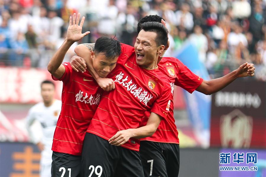 ↑10月28日晚,2018赛季中超联赛第27轮战罢。积分榜前两位的上海上港队和广州恒大队双双大胜对手,争冠悬念依旧。武磊本轮打进两球,中超进球数达到100个。而河南建业队的获胜则令保级形势更加复杂,目前积分榜第八位的球队也仅领先倒数第二的河南5分。目前除贵州21分稳坐“副班长”位置之外,建业、泰达、重庆均积28分,富力29分也岌岌可危,同积31分的权健和亚泰、32分的一方也还要继续为保级努力。即使是目前排名第八的北京人和队也仅领先建业等三队5分。最后三轮保级大战将异常惨烈,局面也将十分混乱。 贵州恒丰 0-3 广州恒大 10月28日,广州恒大队作客贵阳,并以3比0击败目前积分垫底的贵州恒丰队。比赛第36分钟,广州恒大队张成林接队友塔利斯卡的头球,凌空抽射破门。第52分钟,郜林组织进攻,邓涵文边路插上利用一记弧线球传中,于汉超抢点头球攻门,命中球门死角。比赛第73分钟,广州恒大队的于汉超助攻队友塔利斯卡,后者将球打进球门死角,广州恒大队轻松拿下比赛。 图为广州恒大淘宝队球员张成林(左)进球后与队友庆祝。 新华社记者刘续摄