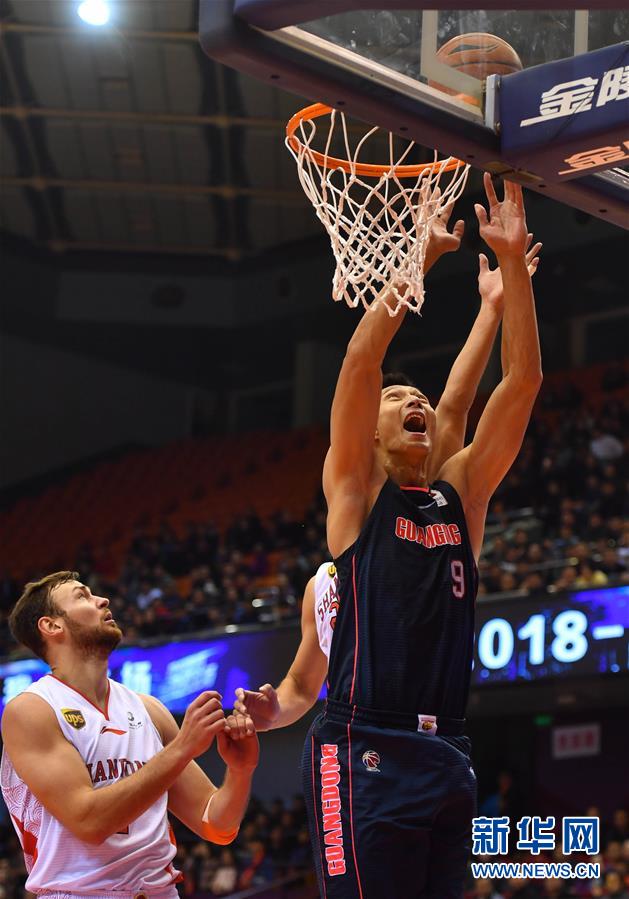10月30日,广东东莞银行队球员易建联(右)在比赛中投篮。 新华社记者朱峥摄