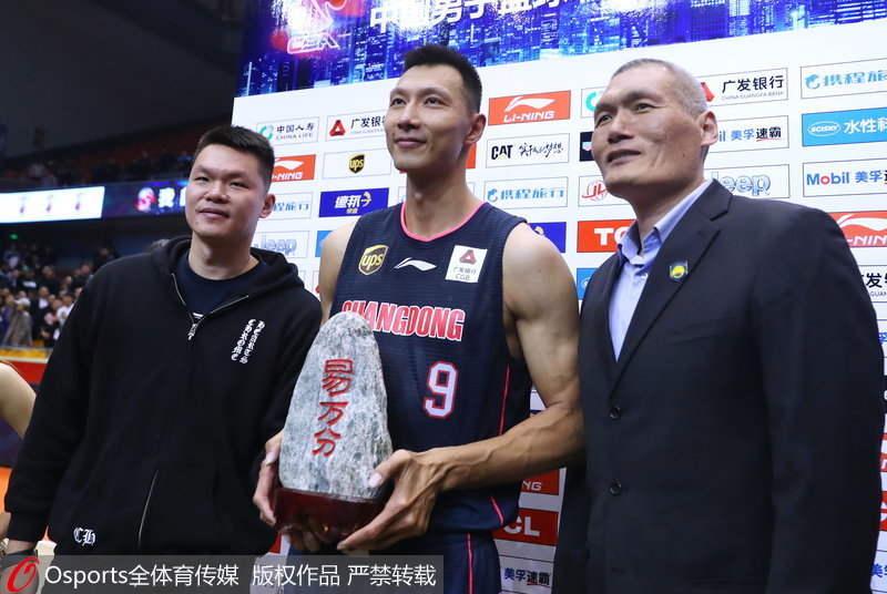 朱芳雨为易建联颁发“易万分”纪念奖杯