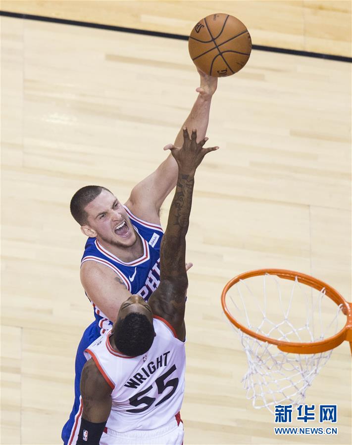 10月30日,76人队球员迈克·穆斯卡拉(后)在比赛中上篮。 新华社发(邹峥摄)