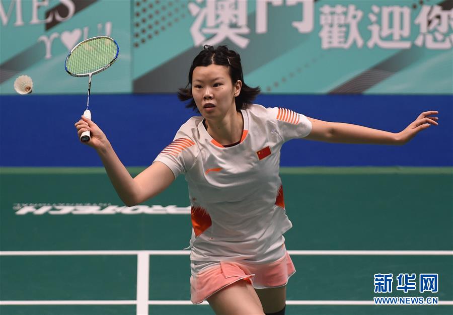 10月31日,中国选手李雪芮在比赛中回球。 当日,在2018世界羽联巡回赛澳门公开赛女子单打第一轮比赛中,中国选手李雪芮以2比0战胜中国香港选手叶姵延,晋级下一轮。 新华社记者卢炳辉摄