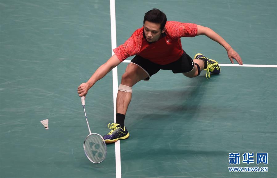 10月31日,中国香港选手胡赟在比赛中回球。 新华社记者卢炳辉摄