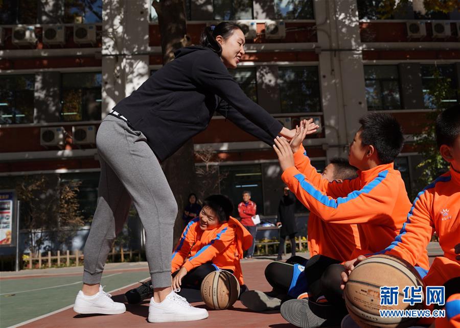 中国女篮队长邵婷走进小学校园与学生交流