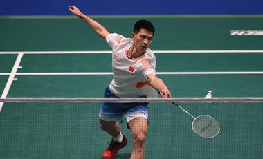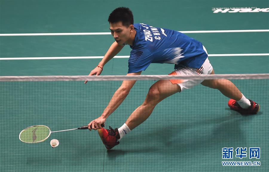 11月1日,赵俊鹏在比赛中回球。 当日,在2018世界羽联巡回赛澳门公开赛男子单打第二轮比赛中,中国选手赵俊鹏以2比1战胜马来西亚选手张维峰,晋级下一轮。 新华社记者卢炳辉摄