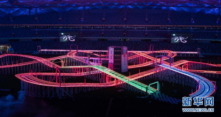 11月2日,开幕式现场。 当日,首届世界无人机锦标赛开幕式在深圳大运中心举行。来自34个国家和地区的128名竞速无人机运动员参加开幕式。 新华社记者 周自扬 摄