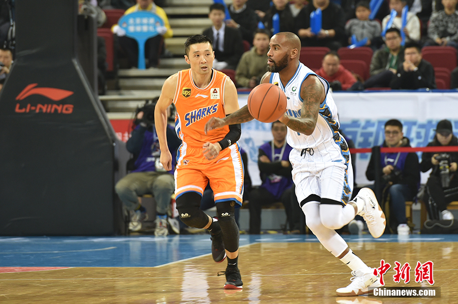 11月2日CBA常规赛第6轮焦点战北京主场迎战上海,北京在最后5秒落后三分的情况下,凭借小外援杰克逊的神奇压哨三分,将比赛拖入加时。加时赛中,上海依靠王潼在内线的连续二次进攻,最终以118-113险胜北京,取得4连胜的同时送给对手3连败。图为杰克逊带球。中新网记者 翟璐 摄