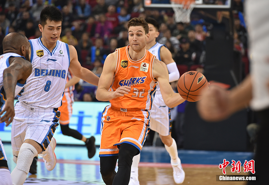 本场比赛最为抢眼的就是上海队的第一得分点弗雷戴特,其三分绝技更是盛名在外。在前三节比赛中他已个人得分30+。本场赛事双方实力在伯仲之间,多次出现焦灼比分并呈现出比分交替领先的局面中,第三节比赛临近结束前,弗雷戴特更是在三分线外两步距离强行出手,打板命中压哨远投。图为弗雷戴特带球。中新网记者 翟璐 摄