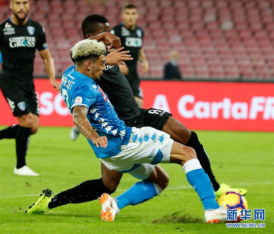 11月2日,那不勒斯队球员马尔库特(左)在比赛中和恩波利队球员特拉奥雷拼抢。 当日,在2018-2019赛季意大利足球甲级联赛第11轮比赛中,那不勒斯队主场以5比1战胜恩波利队。 新华社发(阿尔贝托·林格里亚摄)