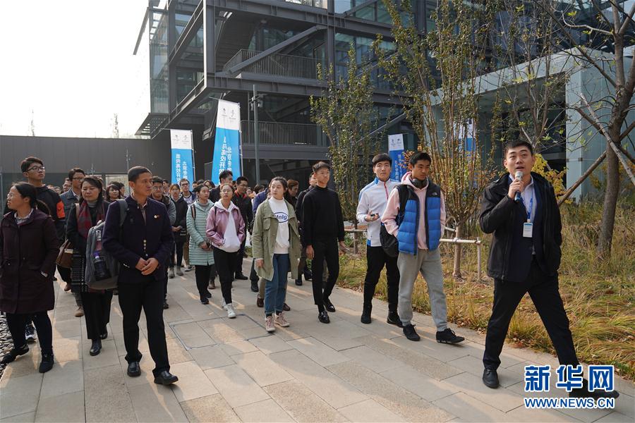 11月2日,来自清华大学等高校的教师和学生代表在北京冬奥组委首钢办公区参观。 当日,北京冬奥组委举办面向高校开放日活动暨首批北京2022年冬奥会和冬残奥会培训基地授牌仪式。新华社记者鞠焕宗摄