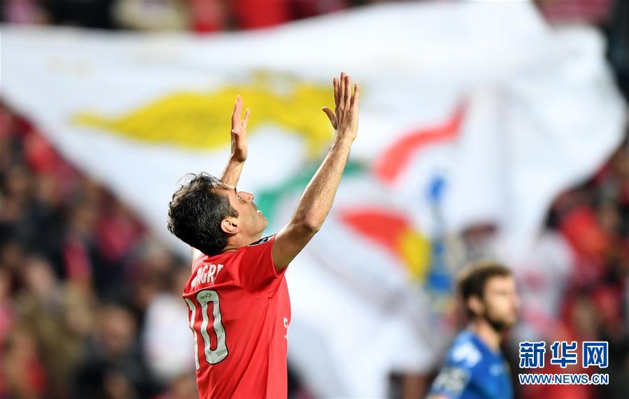 11月2日,本菲卡队球员若纳斯在比赛中庆祝进球。 当日,在2018-2019赛季葡萄牙足球超级联赛第九轮比赛中,本菲卡队主场以1比3不敌摩雷伦斯队。 新华社记者张立云摄