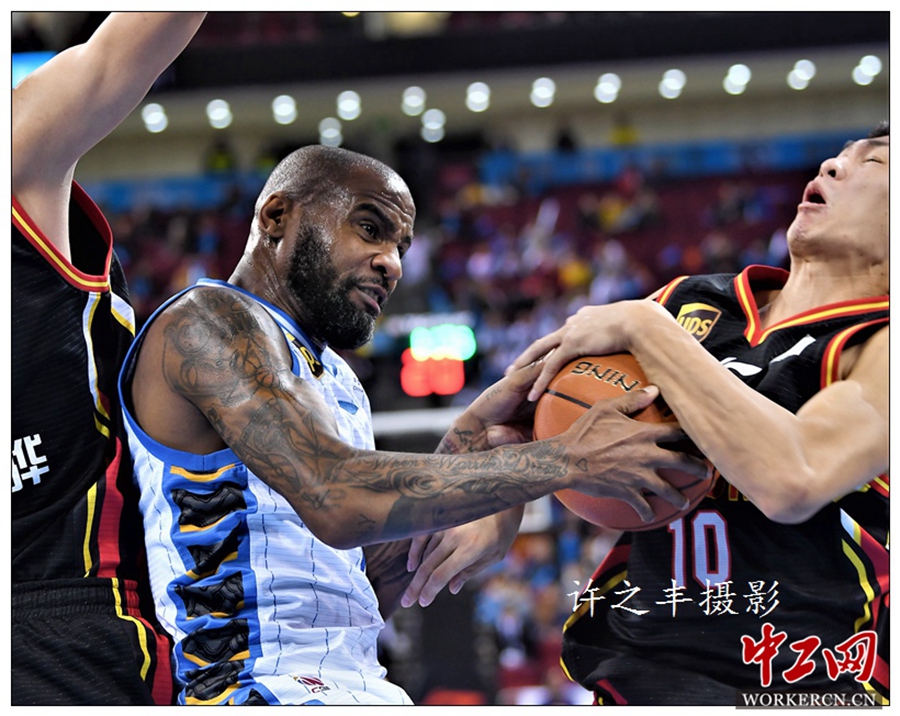 2018年11月4日晚,CBA联赛第七轮比赛,北京首钢队凭借着末节的出色发挥以114比102战胜南京同曦队,结束了三连败,主场获得首场胜利。工人日报-中工网记者许之丰摄影报道