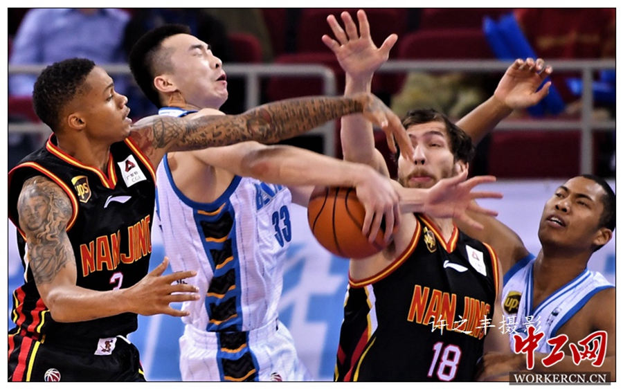 2018年11月4日晚,CBA联赛第七轮比赛,北京首钢队凭借着末节的出色发挥以114比102战胜南京同曦队,结束了三连败,主场获得首场胜利。工人日报-中工网记者许之丰摄影报道