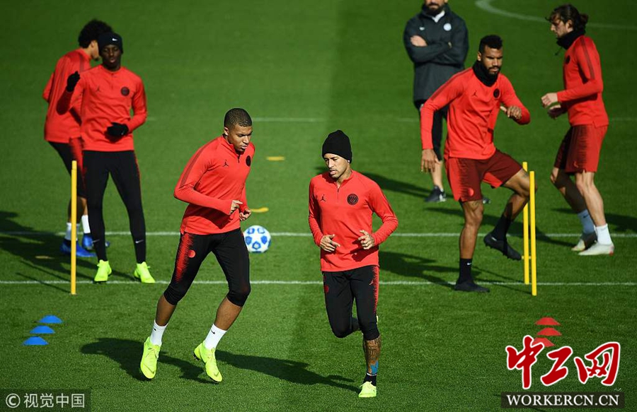 北京时间明天凌晨,欧冠联赛将拉开第4轮小组赛的战幕。图为2018年11月5日,巴黎,18/19欧冠小组赛C组前瞻,巴黎圣日耳曼训练备战。图片来源:视觉中国