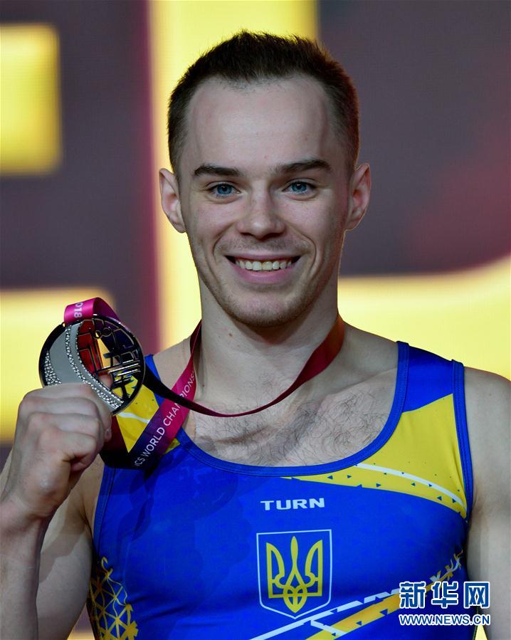 乌克兰选手韦尔尼艾耶夫在男子双杠决赛颁奖仪式上新华社发