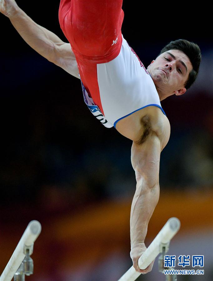 俄罗斯选手达拉洛扬在男子双杠决赛中,最终,他以15.366分获得季军。 新华社发
