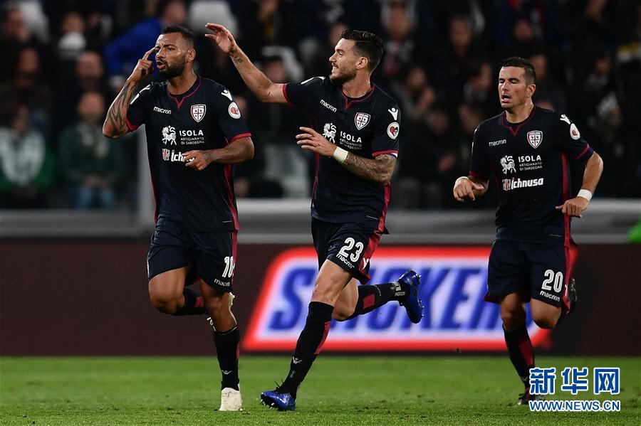 卡利亚里队球员若昂·佩德罗(左)在比赛中庆祝进球。新华社/法新
