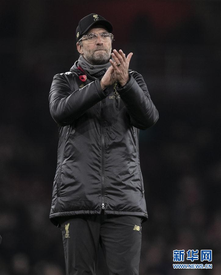 利物浦队主教练克洛普在赛后向球迷致意。新华社记者韩岩摄
