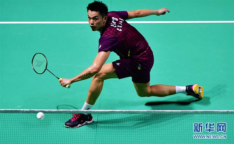 11月6日,林丹在比赛中回球。 当日,在2018中国(福州)羽毛球公开赛男单首轮比赛中,中国选手林丹以0比2不敌日本选手桃田贤斗,无缘下一轮。 新华社记者魏培全摄